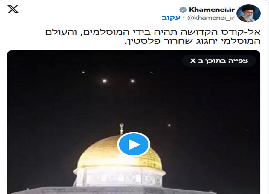 24 שעות לאחר המתקפה הלילית על ישראל, צייץ הלילה (ראשון) מנהיג איראן, האייתולה עלי חוסייני חמינאי, בחשבון ה-X שלו: "אל-קודס הקדושה תהיה בידי המוסלמים, והעולם המוסלמי יחגוג שחרור פלסטין".