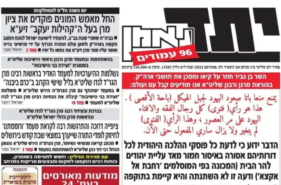הביטאון יתד נאמן, המזוהה עם סיעת דגל התורה, תקף הבוקר (שלישי) בחריפות את השר לביטחון לאומי איתמר בן גביר, לאור התנהלותו בשבועות האחרונים בנושא עליית יהודים להר הבית.