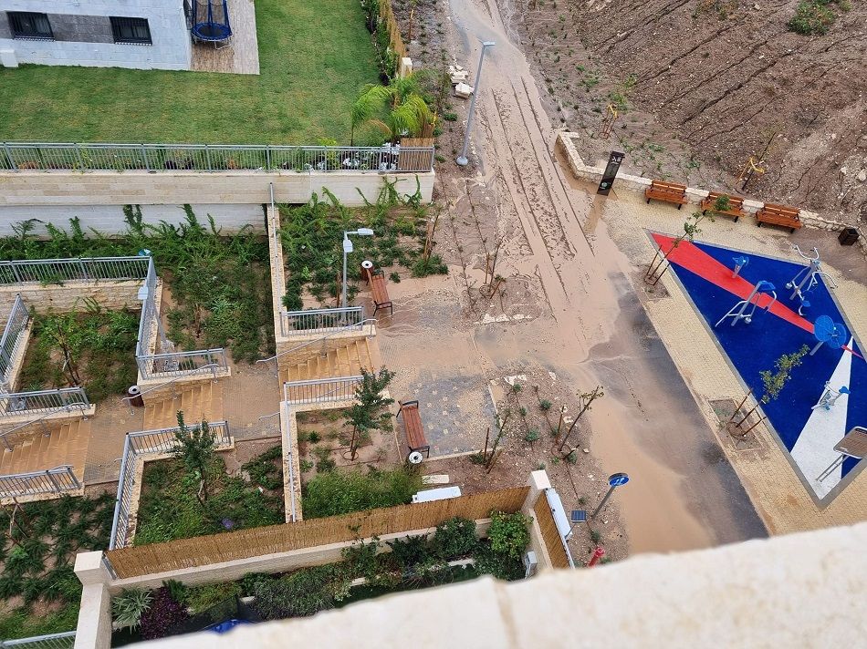 הגשם העז בשבוע שעבר הבהיר לדיירי רחוב שמעון פרס במורשת, הגובלים באתר א-שון, כי תכנון לקוי מביא כעת לגלישת מים ובוץ אל השביל העוטף את הגבעה, אל המדרגות המובילות לתחתית הרחוב ואף לתוך חניוני הבניינים הסמוכים.