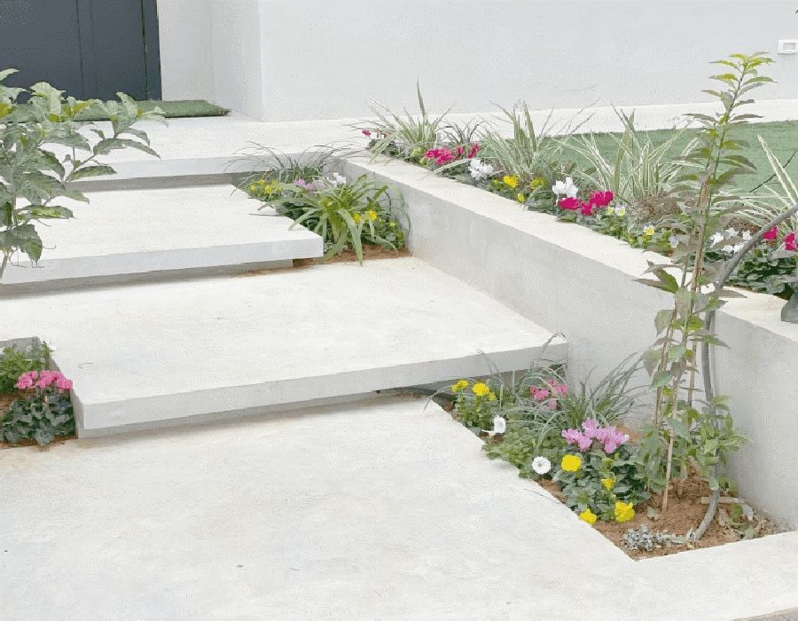 • ניתן לבחור ברצפת בטון חלקה לחלוטין ללא סימני חלוקה בין המרצפות, או לבצע חלוקה יזומה לצורות וטקסטורות על פי בקשת הלקוח.