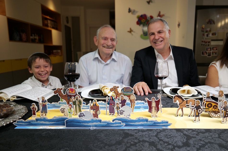 אל הראנר המוצב בלב השולחן צירפו השלושה דף משחקים. "אחת המשימות למשל, היא לעזור למשה לברוח מפרעה. בכל פעם שקוראים בהגדה את המילה 'פרעה' מקדמים את החייל המצרי, וכל פעם שקוראים את המילה 'משה' מקדמים את הדמות של משה. ככה הילד נשאר אקטיבי ומעורב בסיפור ההגדה, הכל עם חידות ומשחקים לשולחן".