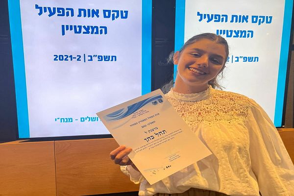 תהל כהן, תלמידת י"ב באמי"ת בנות, זכתה השבוע באות הפעיל המצטיין של משרד החינוך, הודות לפעילותה בנבחרות הרובוטיקה המקומיות