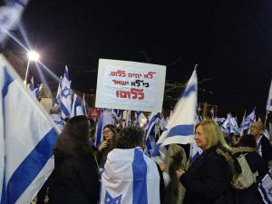 בעוד מאמצי ההידברות נמשכים בבית הנשיא, התחדשו ההפגנות מול ביתו של יריב לוין במודיעין ואלפיים תושבי העיר הגיעו למחות כנגד הרפורמה המשפטית