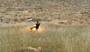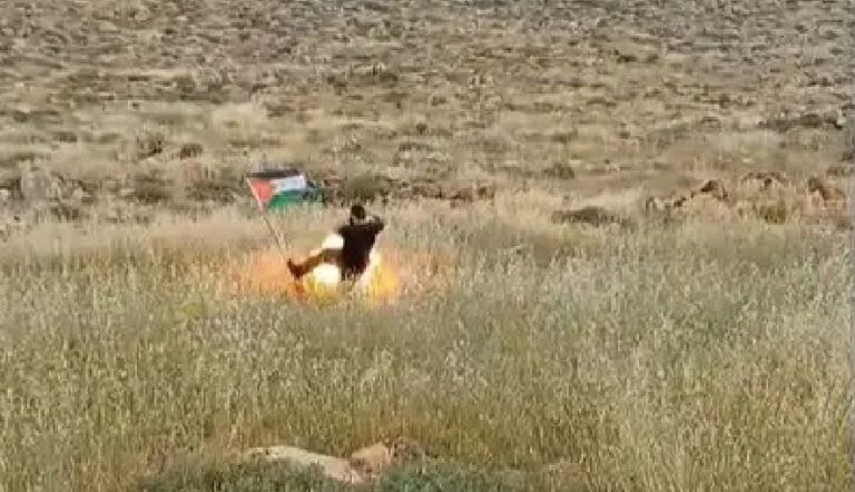 גבר ישראלי תועד הבוקר כשהוא בועט בדגל פלסטין שהוצב באמצע שדה פתוח ליד היישוב כוכב השחר, ונפצע באורח קל