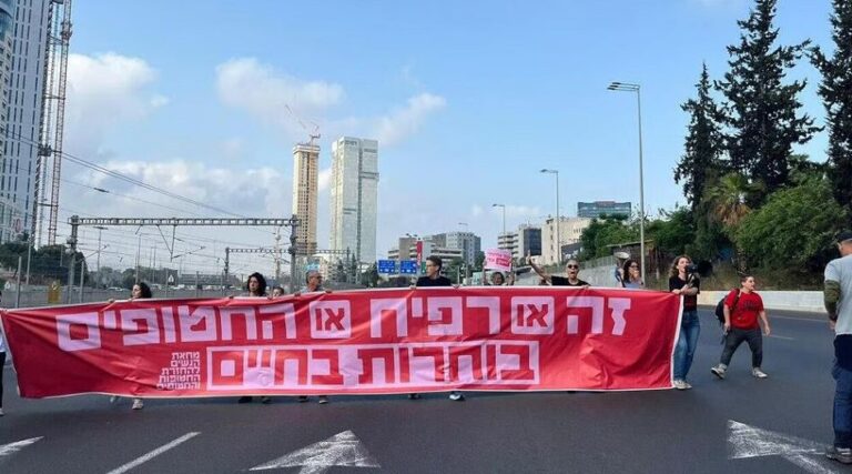 כמה בני משפחות החטופים ועשרות פעילות מחאת הנשים חסמו לתנועה את הכביש המהיר באזור מחלף לה גווארדיה, במחאה על הדשדוש במגעים לעסקה עם חמאס
