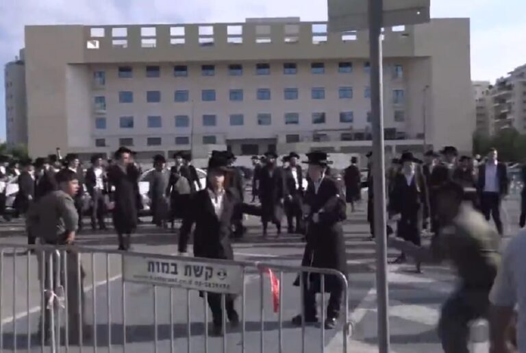 עשרות מפגינים חברי הפלג הירושלמי הקיצוני מתעמתים הבוקר עם כוחות המשטרה לאחר זימונם של מאות חרדים ללשכת הגיוס