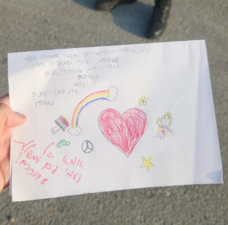 בתחילת הלחימה קיבל החייל איתי טוביאס מכתב מילדה קטנה ממודיעין, שריגש אותו באופן מיוחד: "הלכתי הצידה והתחלתי לבכות". כעת, לאחר שהשתחרר וקעקע על גופו את הציור שציירה, והצליח לאתר את משפחתה, ייפגשו החייל והילדה בסוף השבוע