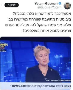 יותם גוטמן מהרצליה תקף בחריפות את אימו של החטוף שנורה בשוגג בידי חיילי צה"ל, ושר החינוך קרא להעמידו לשימוע