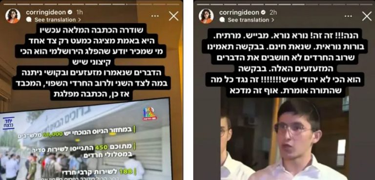 מנחת הטלוויזיה תקפה בסדרת פוסטים ברשתות החברתיות: "ראינו כתבה בערוץ 12 שדיברו עם אנשים מישיבת פונוביץ', שאומרים דברים מזעזעים כמו 'אנחנו נמות ולא נתגייס', והכי נורא שהם האשימו את מי שהיה בנובה"